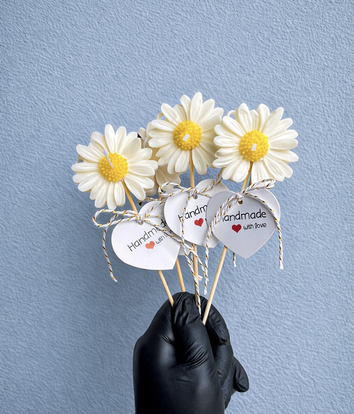 Kézzel készült, különleges margaréta formájú gyertya, 100% vegán szójaviaszból.
