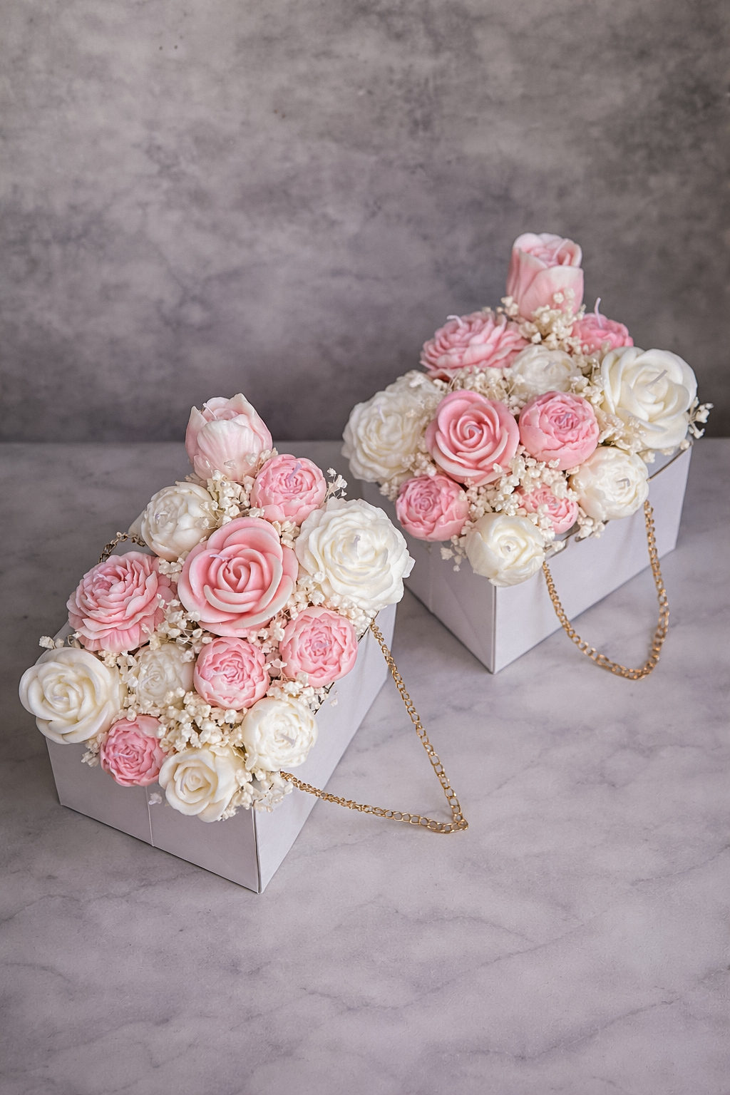 Ez az elegáns virágbox valójában egy különleges kézzel készült gyertya egyveleg, amely prémium szójaviaszból készült és finom rózsaillattal tölti meg a teret.🌺