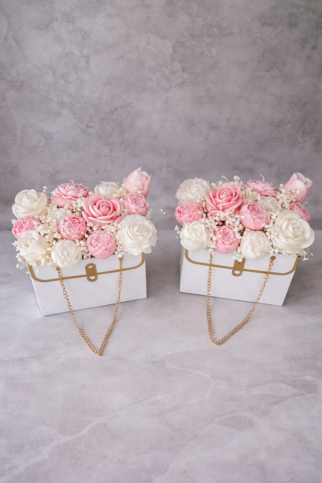 A fehér táska elegáns megjelenést ad a gyertya virágoknak, ezért ajándéknak is tökéletes választás születésnapra, évfordulóra, anyák napjára vagy bármilyen különleges alkalomra.✨